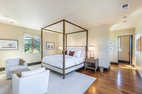 The queen bedroom offers a calm and inviting space with a plush queen bed and premium linens. A clean modern design and soft natural light create a relaxing atmosphere, making it an ideal retreat for a restful night after a day exploring Sonoma.